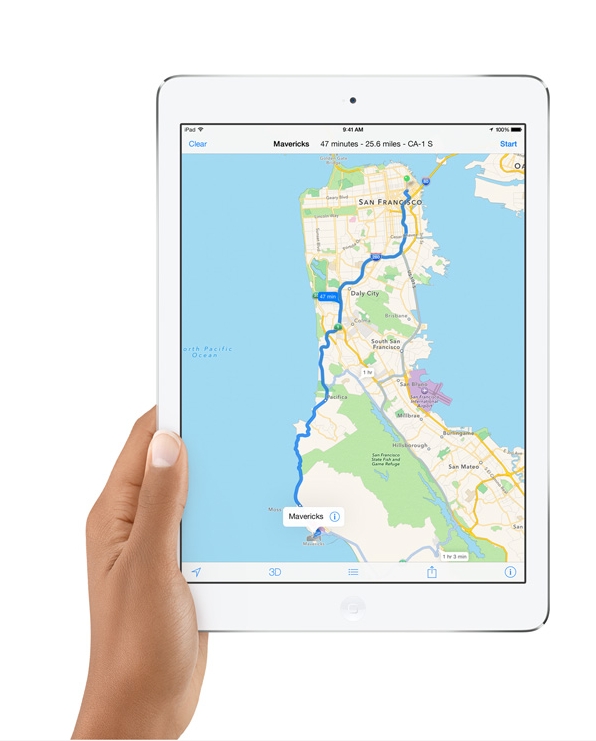 ОС: iOS 7. Процессор: 2-ядерный Apple A7, 1.3 ГГц, 64 бит. Память: 1 ГБ ОЗУ, 16/32/64/128 ГБ ПЗУ. Вес: 478 г. Размер: 240*169.5*7.5 мм. Экран: Retina. Размер, д.: 9.7. Камера: 5 МП , Wi-Fi, Bluetooth, 3G, GPS.